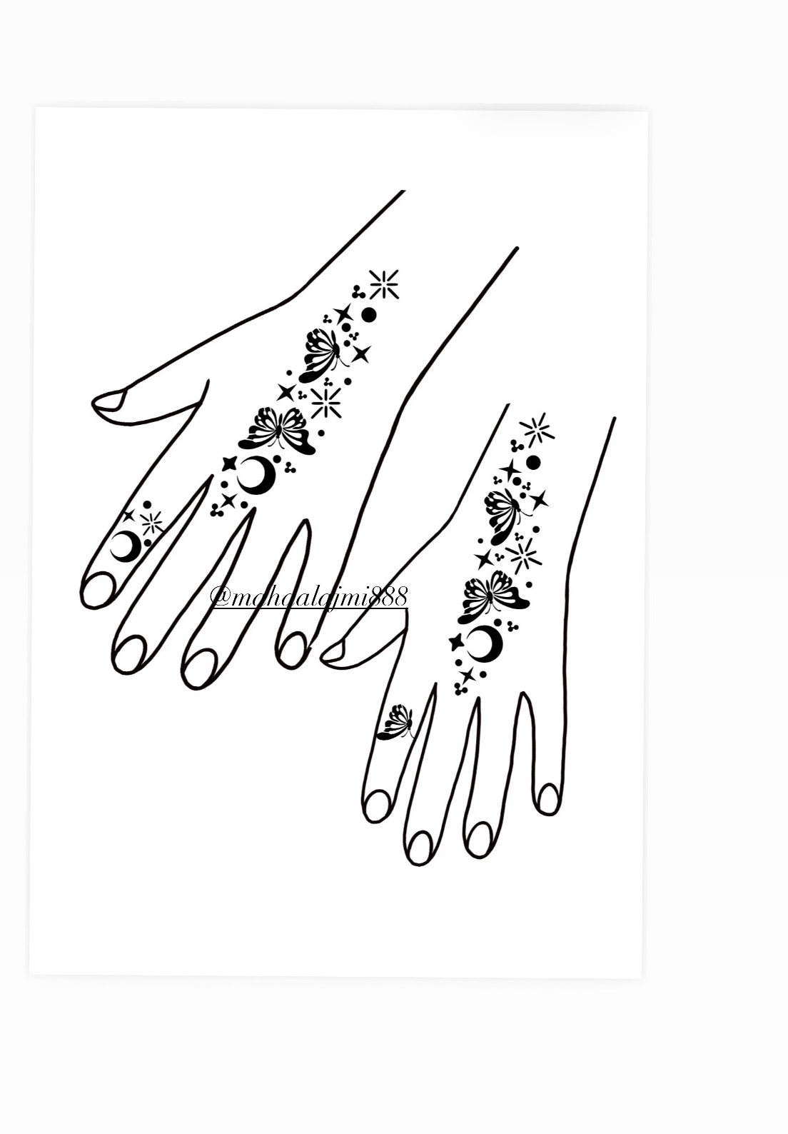 استيكرات التعبئه الحناء تستخدم الصفحه لليد الوحده فقط لليدين يجب أخذ صفحتين Henna filling stickers use one sheet for one hand. For both hands, you need two sheets.